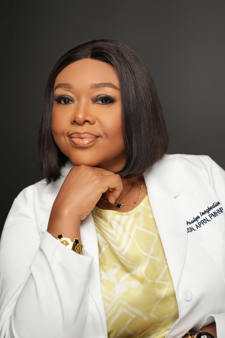 I am Paulyn Inegbedion, a Mental Health Nurse Practitioner providing compassionate, evidence-based care in a private practice setting. I am committed to supporting individuals across the lifespan through high-quality, patient-centered mental health services.